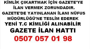 Kimliğimi Kaybettim Ne Yapmalıyım 2019 Kimlik Kaybettim GAZETE İLAN HATTI: 0507 057 01 98 T.C KİMLİĞİNİ KAYBEDENLER YE...
